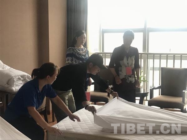 圖為培訓(xùn)班學(xué)員學(xué)習(xí)酒店布草
