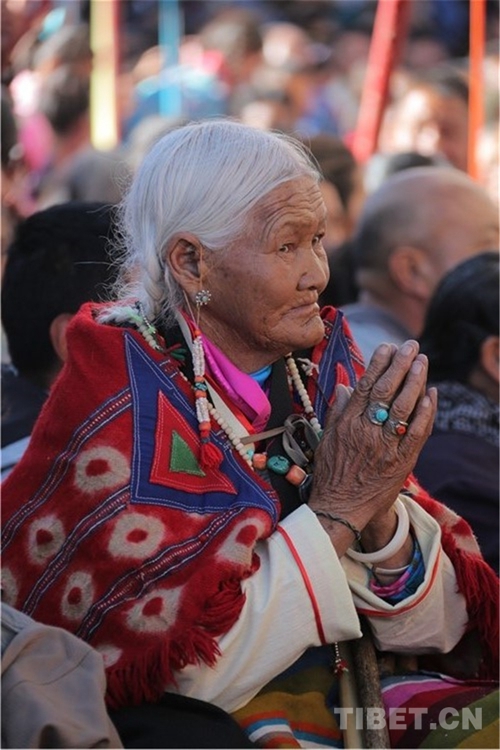 圖為接受長壽灌頂?shù)纳仔沤倘罕?攝影:王淑