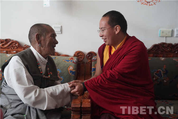 十一世班禪在參加各項(xiàng)活動(dòng)期間,專程看望阿里地區(qū)“雙集中”供(收)養(yǎng)服務(wù)中心的老人和孩子們,并為每一位老人摸頂賜福,噓寒問(wèn)暖,給老人和孩子們帶去了親人般的關(guān)懷。一位老阿媽(嬤啦)當(dāng)場(chǎng)緊緊拉著十一世班禪的手放在自己的額頭,感動(dòng)流淚,嘴里不停地說(shuō)“突吉其,突吉其”(謝謝!謝謝!)。十一世班禪和老人們圍坐在一起飽含深情地說(shuō):“在黨中央的關(guān)心關(guān)懷下,老人家弱有所扶、老有所養(yǎng)、病有所醫(yī)、住有所居,這充分體現(xiàn)了社會(huì)主義制度的無(wú)比優(yōu)越性,看到你們健康幸福的生活我很欣慰,我會(huì)為你們祈禱,我會(huì)再來(lái)看望你們。”充滿溫情的一幕使在場(chǎng)人員無(wú)不動(dòng)容。