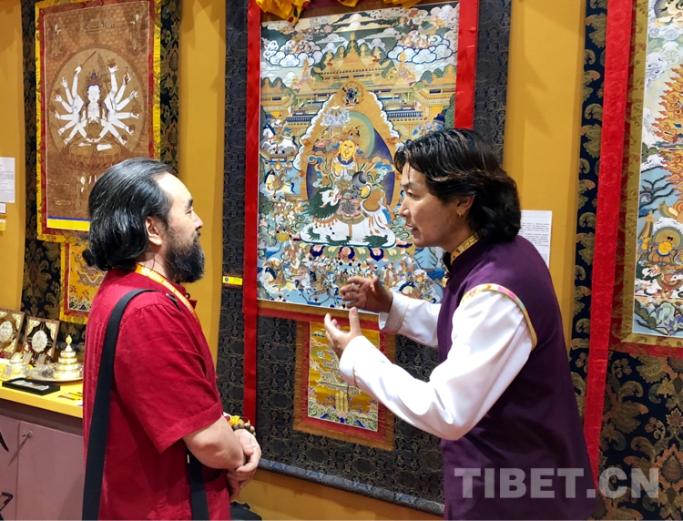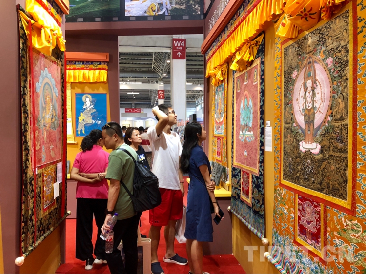 圖為青海省黃南藏族自治州非遺文化展區(qū)展出的熱貢唐卡 攝影:格桑嘉措