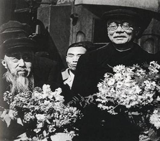 1951年4月6日至5月29日,林伯渠、沈鈞儒分任中蘇友好協(xié)會赴蘇參加“五一”節(jié)觀禮代表團(tuán)正、副團(tuán)長,率團(tuán)對蘇聯(lián)進(jìn)行參觀訪問。圖為代表團(tuán)在莫斯科車站受到熱烈歡迎。前排左為沈鈞儒,右為林伯渠 圖片來源:人民網(wǎng)