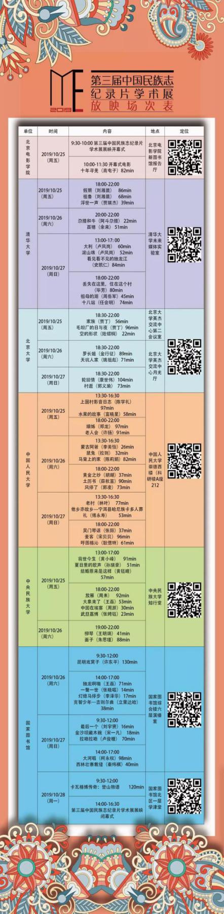 圖為“中國民族志紀錄片學術展”放映場次表