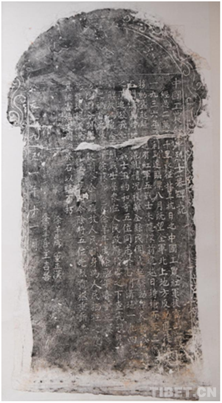 展覽中還有一幅與紅軍過雪域有關的展品——《中國工農(nóng)紅軍烈士墓碑》(1951年)拓片。碑文記錄了這樣一段歷史:1936年,中國工農(nóng)紅軍長征北上抗日到達臨潭(今甘肅省甘南藏族自治州臨潭縣)時,紅軍戰(zhàn)士王約如等5位戰(zhàn)士在石門溝犧牲。1949年,這5位戰(zhàn)士被追念為先烈戰(zhàn)士,人民政府查究兇手,重新安葬了英烈戰(zhàn)士靈柩。