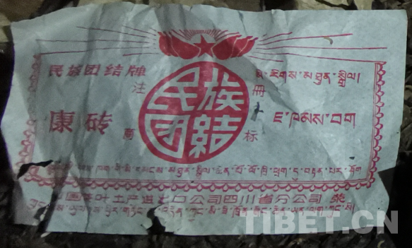 圖為西藏自治區(qū)阿里地區(qū)普蘭縣科迦村居民家中保存的滎經(jīng)生產(chǎn)的“民族團結牌”康磚標識 攝影:趙國棟
