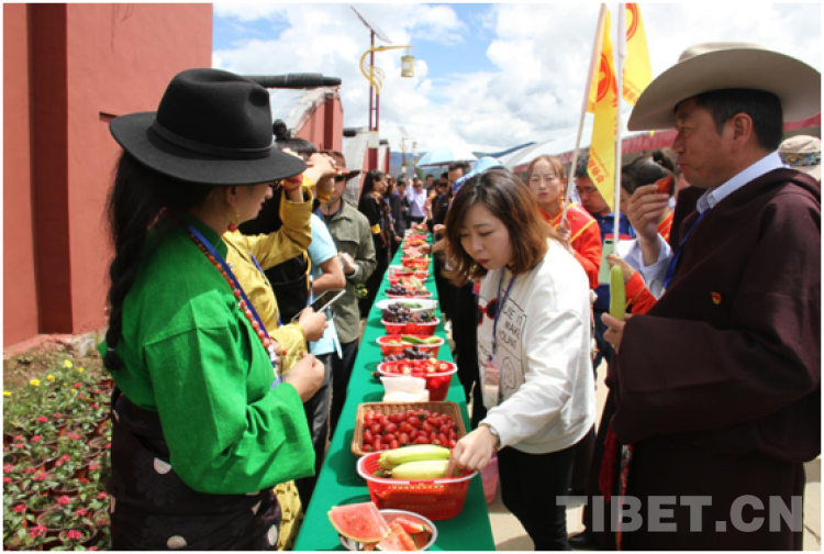 資料圖:在甘孜州農(nóng)特產(chǎn)品產(chǎn)銷對接會理塘分會場上,極地果蔬受到商家和游客喜愛