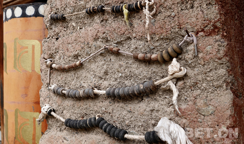 圖為寺廟土墻上信徒用來記數(shù)的珠子