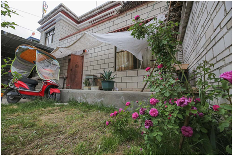 圖為扎囊縣扎其鄉(xiāng)德吉新村村民央金卓瑪家院子里盛開的玫瑰 攝影:趙耀