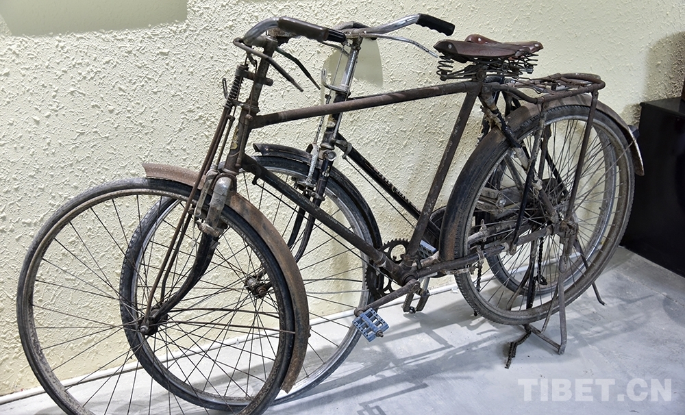 圖為林周農(nóng)場(chǎng)場(chǎng)部舊址里展示的自行車 攝影:王媛媛