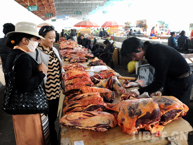 牧民次瓊,每天都能很快地將自宰的牛羊肉運到安多縣城里的市場銷售,獲得很不錯的收入。市場里,像次瓊一樣,將自家畜產品帶到縣城和那曲鎮(zhèn)銷售的牧人,大多是乘坐往返客運班車來到市場的。