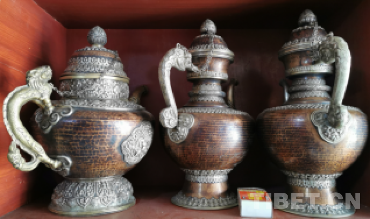 圖為西藏自治區(qū)阿里普蘭縣邊貿(mào)市場(chǎng)中精美的茶壺 攝影:趙國(guó)棟