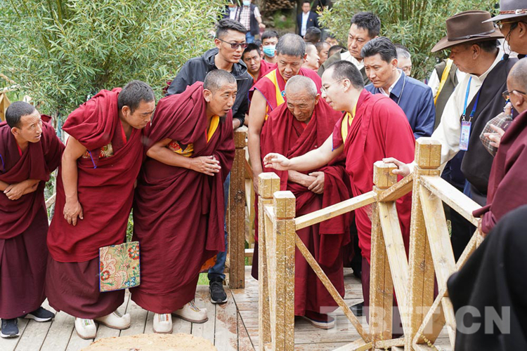圖為十一世班禪在吞達村藏香制作園內(nèi) 攝影:王淑