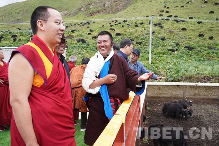 在調(diào)研中,十一世班禪關(guān)心的問題得到了很好的解答,他頻頻點(diǎn)頭表示贊許。從娘亞牦牛原種場(chǎng)了解到養(yǎng)殖基地的建成運(yùn)營情況后,十一世班禪立刻趕往公司加工車間和銷售店,觀摩酥油、奶制品制作過程,了解銷售、帶動(dòng)牧民增收情況。十一世班禪希望公司能夠?qū)⒓卫璧淖匀粴夂颉⑼恋貤l件等實(shí)際情況與科學(xué)實(shí)驗(yàn)相結(jié)合,樹立好家鄉(xiāng)民族特色品牌,為草原生態(tài)保護(hù)和畜牧業(yè)發(fā)展探索經(jīng)驗(yàn)。
