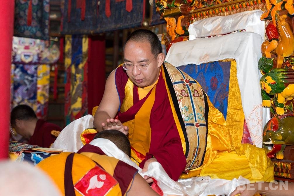 十一世班禪為達(dá)姆寺僧人摸頂 攝影:鄭朔