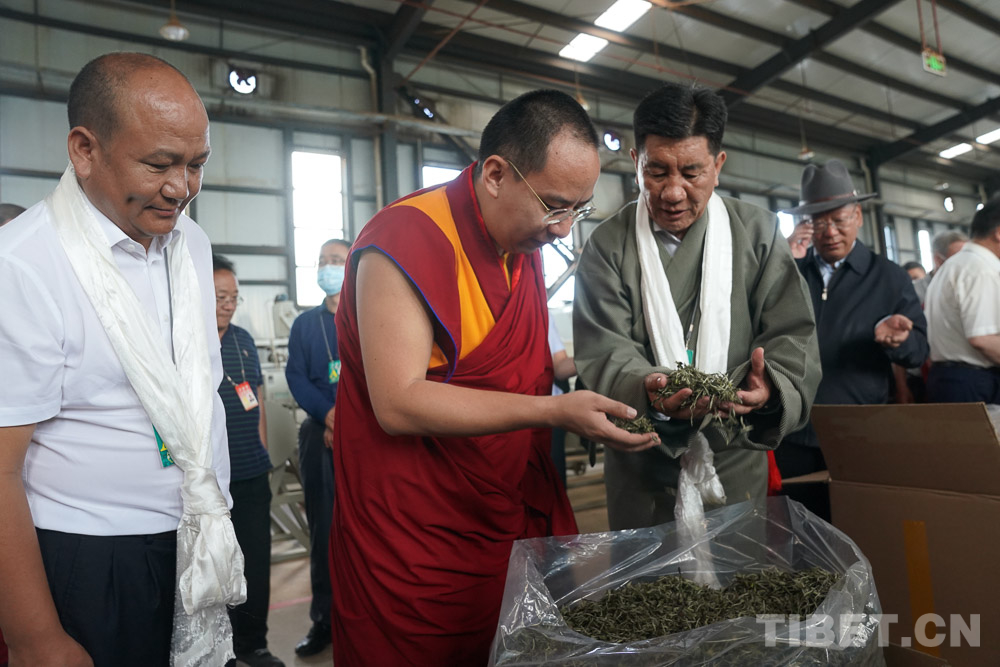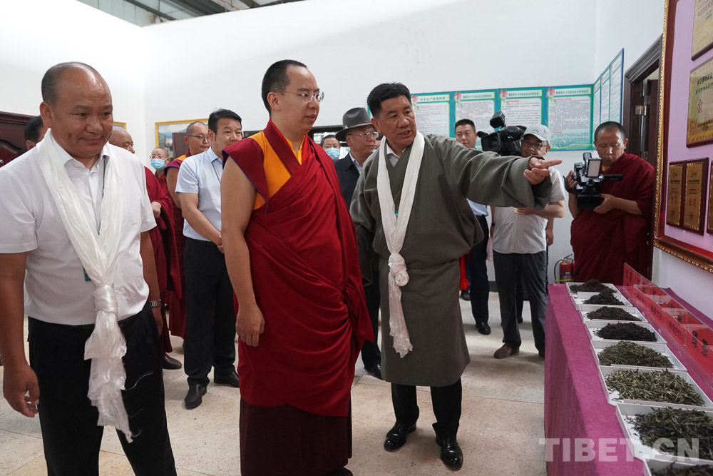 圖為十一世班禪在茶場生產(chǎn)車間察看茶葉加工情況 攝影:王淑