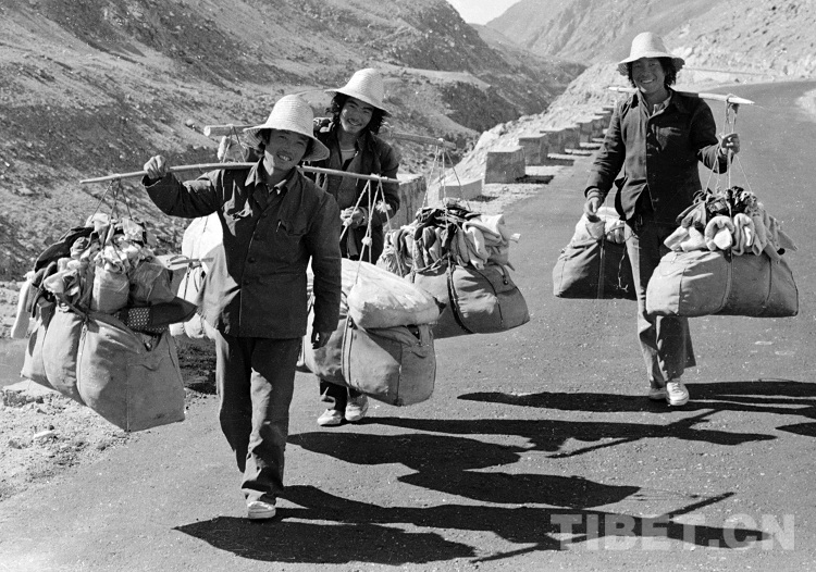這是三位肩挑商品,走進(jìn)藏北高原的內(nèi)地“候鳥(niǎo)”型貨郎(唐召明1989年攝)