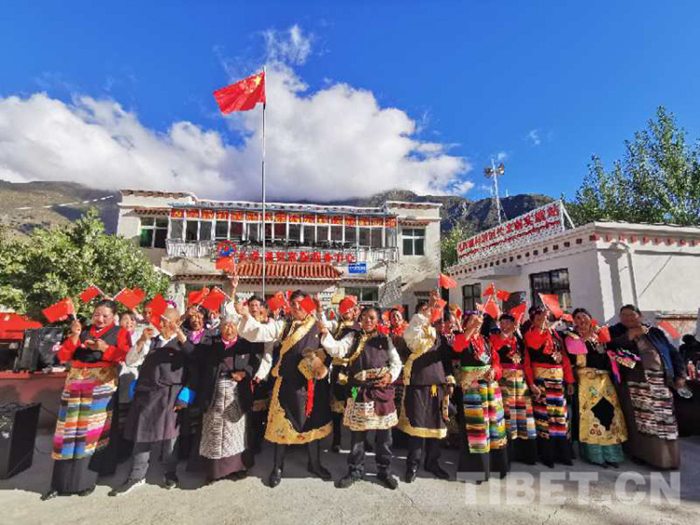 圖為村民齊唱國歌祝福偉大祖國 圖片由林芝市宣傳部提供