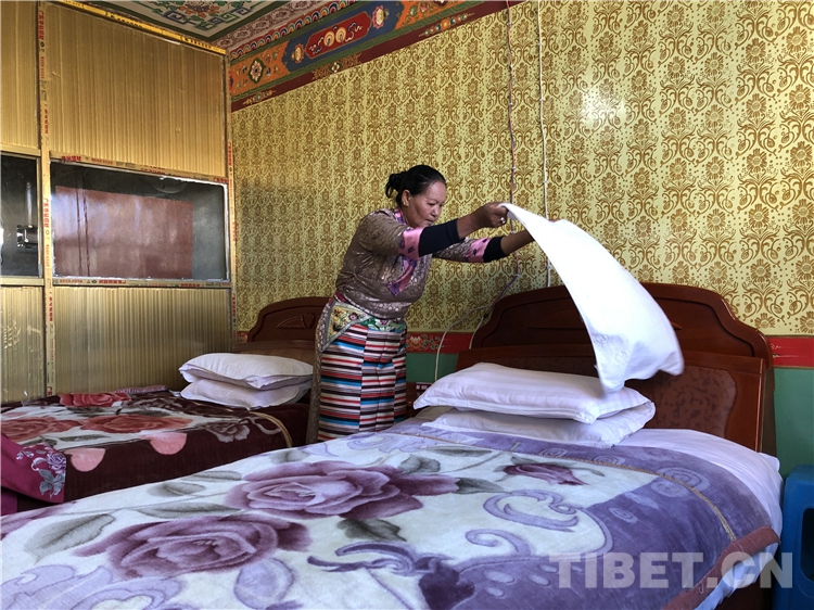 回想剛剛開辦家庭旅館的日子,靦腆的金珠德吉忍不住多說了幾句,2006年,金珠德吉和丈夫在村里開起了第一家家庭旅館,那時(shí)候房子還是土坯房,并且只有4張床位,讓她沒想到的是第一年就有了3000多元的收入。