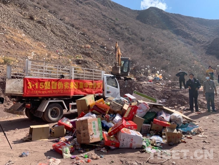 圖為統(tǒng)一無(wú)污染銷毀收繳的假冒偽劣商品