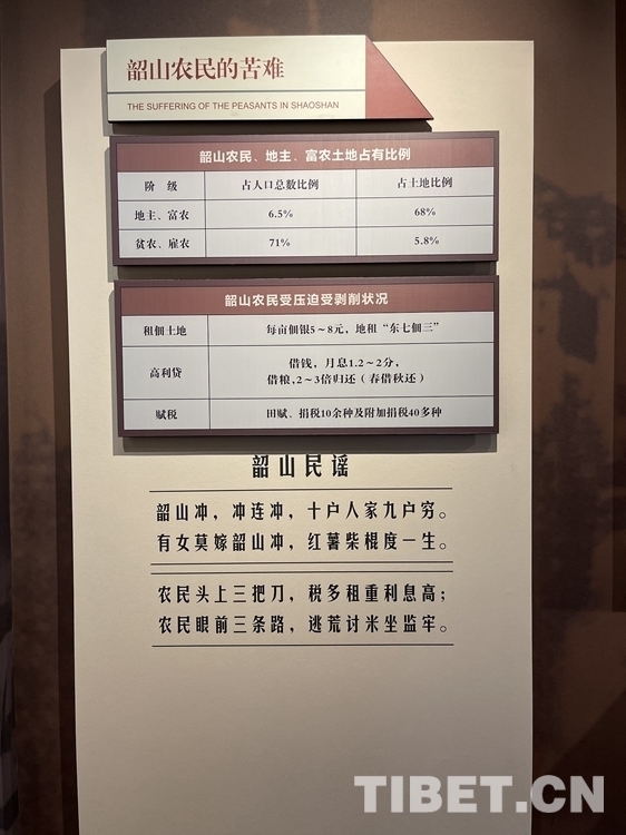 1925年2月,毛澤東回到韶山,創(chuàng)辦農(nóng)民夜校,開展農(nóng)民運動,給在茫茫黑夜中的韶山人民帶來了希望。圖為陳列館內(nèi)展出的展示當年韶山人民苦難的歷史資料。