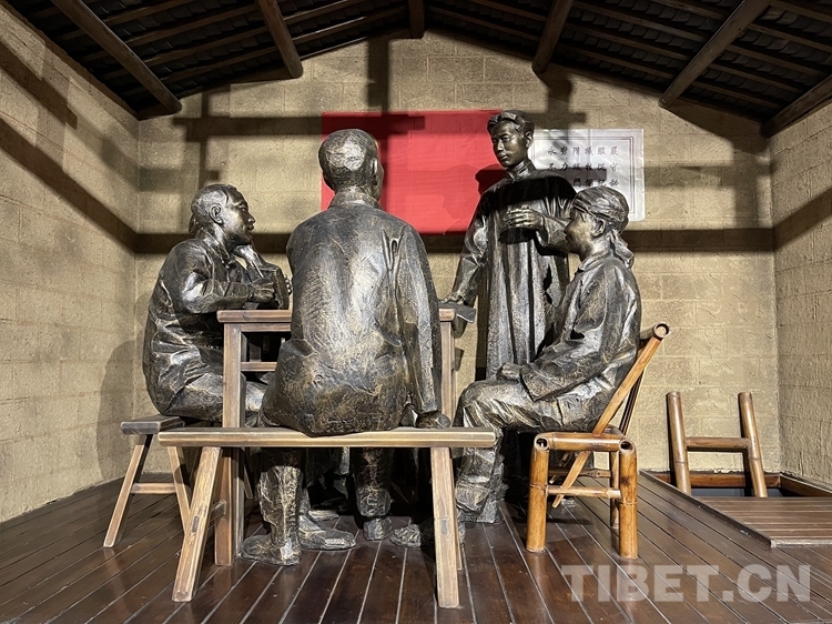 中國西藏網(wǎng)訊 湖南韶山,紅色圣地。韶山市深挖紅色文化資源,依托毛澤東同志故居、紀念館和中共韶山特別支部歷史陳列館等景點,打造了28個常學常新的愛國主義和黨性教育生動課堂。(中國西藏網(wǎng) 記者/楊眉笑)圖為中共韶山特別支部歷史陳列館入口處的雕塑,底座書寫“為有犧牲多壯志 敢教日月?lián)Q新天”。