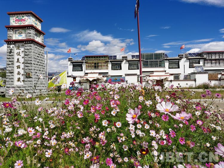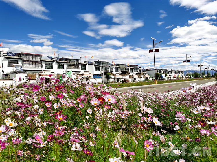 中國西藏網(wǎng)訊 西藏自治區(qū)日喀則市桑珠孜區(qū)江當鄉(xiāng)郭加新村,坐落在通往日喀則和平機場的拉日高速旁,一個鮮花盛開的搬遷村莊,錯落有致的藏式二層小樓,富有民族特色的庭院廣場,寬敞、整潔、一片祥和的安寧景象。