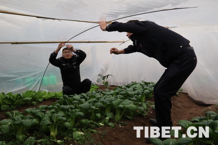 “每到冬天,單位溫室保溫效果就會降低,嚴(yán)重影響了蔬菜種植工作的順利開展,有時候都吃不到新鮮的蔬菜。一次偶然機(jī)會,我了解到這種‘棚中棚’種植技術(shù),保溫效果很好,蔬菜長勢也很好,準(zhǔn)備明年在各基層單位進(jìn)行推廣?!痹摯箨牬箨犻L尼瑪說。