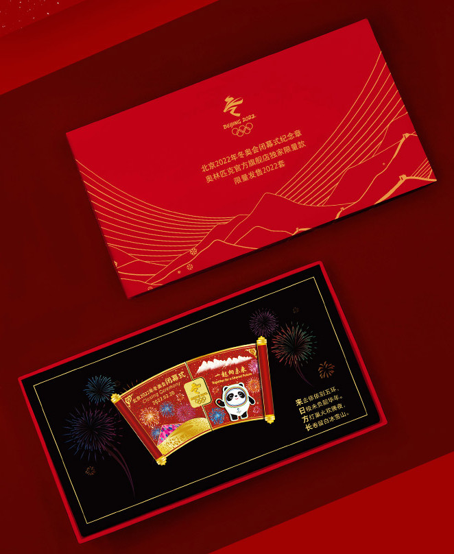 圖為“來(lái)日方長(zhǎng)”北京2022年冬奧會(huì)閉幕式紀(jì)念徽章喜慶好看的包裝盒 圖片來(lái)源:奧林匹克官方旗艦店