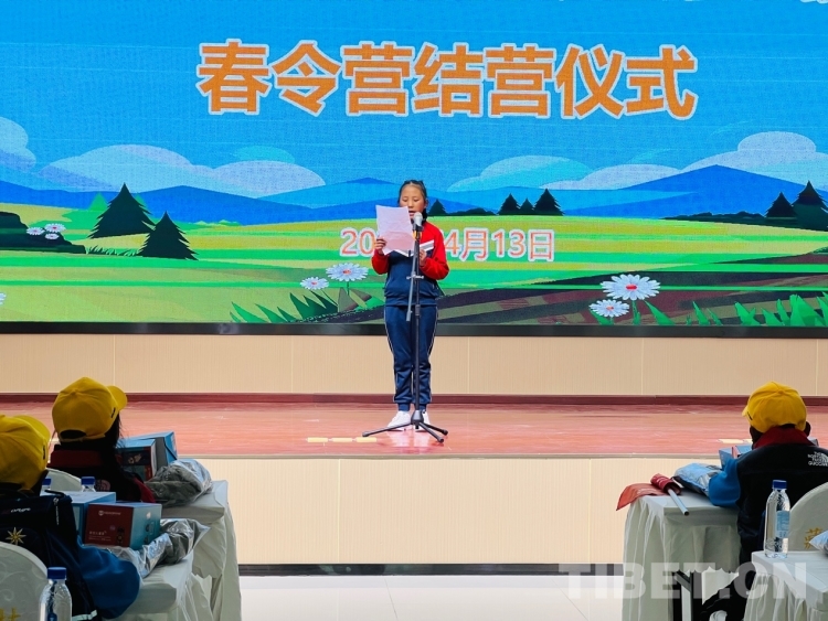 圖為多白鄉(xiāng)學(xué)生代表旦增康卓致謝現(xiàn)場(chǎng) 攝影:德吉卓瑪