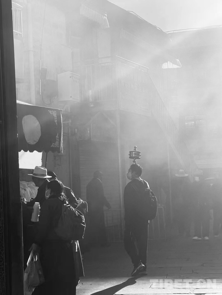 別人的“丁達(dá)爾”照片,多為自然的光效,但我們拍的其實(shí)是人,人的生活——也就是信奉藏傳佛教的普通信眾的幸福生活。