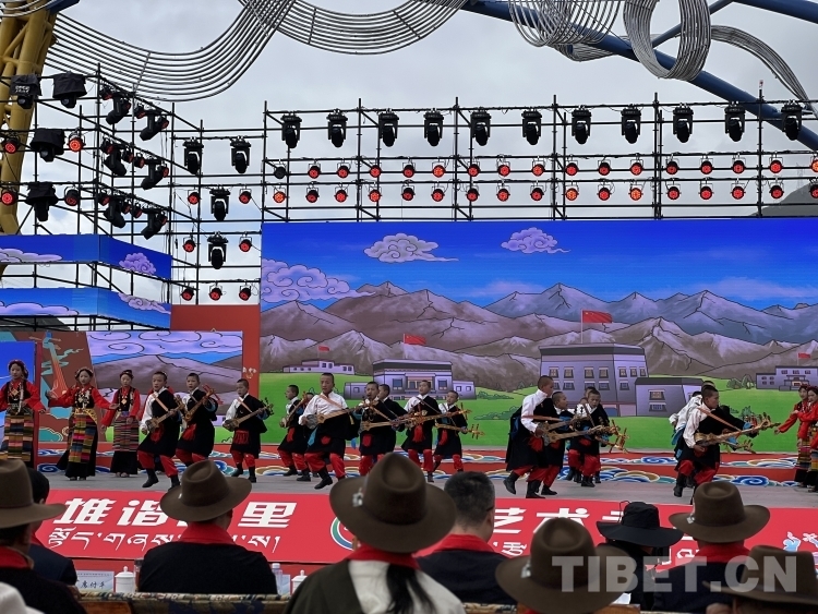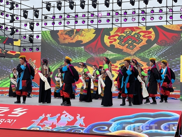 開幕式在莊嚴的國歌聲中拉開序幕。開幕式文藝演出聚焦“堆諧故里,藝術(shù)之鄉(xiāng)”,由拉孜縣藝術(shù)團、民間業(yè)余演出隊、九大藏戲隊、少兒藝術(shù)隊,芒普鄉(xiāng)、扎西崗鄉(xiāng)、柳鄉(xiāng)藝術(shù)隊演出藏戲、堆諧、諧欽(“諧”藏語意為歌舞,“欽”即盛況或隆重之意)、洛諧(定日縣為主的南部歌舞)、果諧(圓圈舞)以及區(qū)內(nèi)知名歌手演唱歌曲組成。整個演出融合傳統(tǒng)民族非遺文化與現(xiàn)代歌舞元素,演出內(nèi)容既富有傳統(tǒng)特色又極具時代魅力,充分展示了拉孜各族人民昂揚向上、團結(jié)奮進、開放包容的精神面貌。