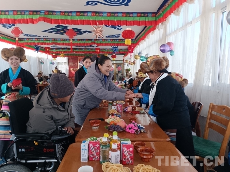 圖為供養(yǎng)服務(wù)中心領(lǐng)導(dǎo)在藏歷新年慰問(wèn)老人 攝影:旦曲