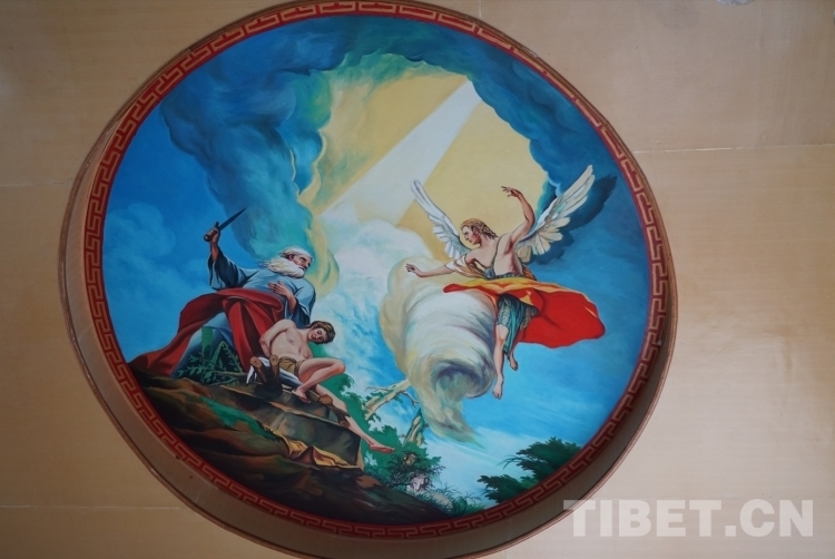 圖為鹽井天主教堂棚頂油畫(huà)