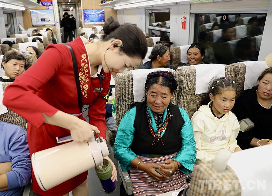 圖為拉日鐵路列車乘務員服務旅客 攝影:馬生明