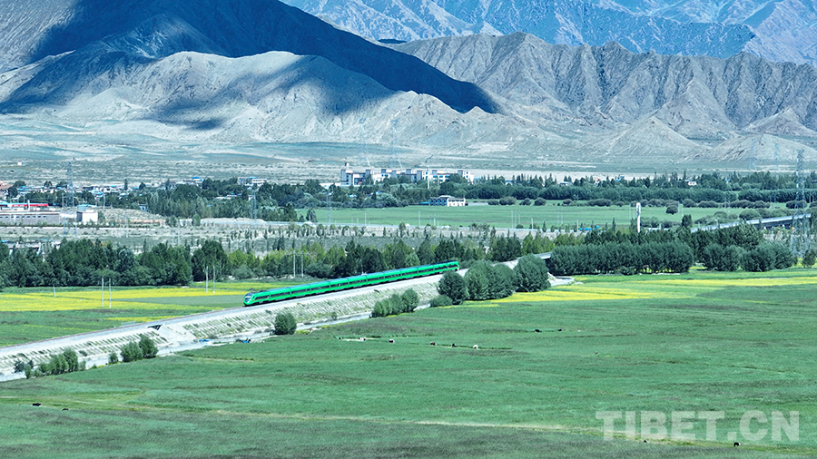 拉日鐵路如同一條金色哈達,“復興號”列車宛若綠色長龍。一條鐵路,一列動車,穿越格桑花海,馳騁雪域天路,串聯(lián)起西藏大美絕倫的自然景觀和瑰麗多彩的民俗文化,把珠峰腳下的日喀則點染得分外迷人。在拉日鐵路通車十周年這個值得紀念的時刻,這條高原鐵路正以新姿態(tài)、新形象、新服務向世人展示新時代西藏高質量發(fā)展的生機與活力。