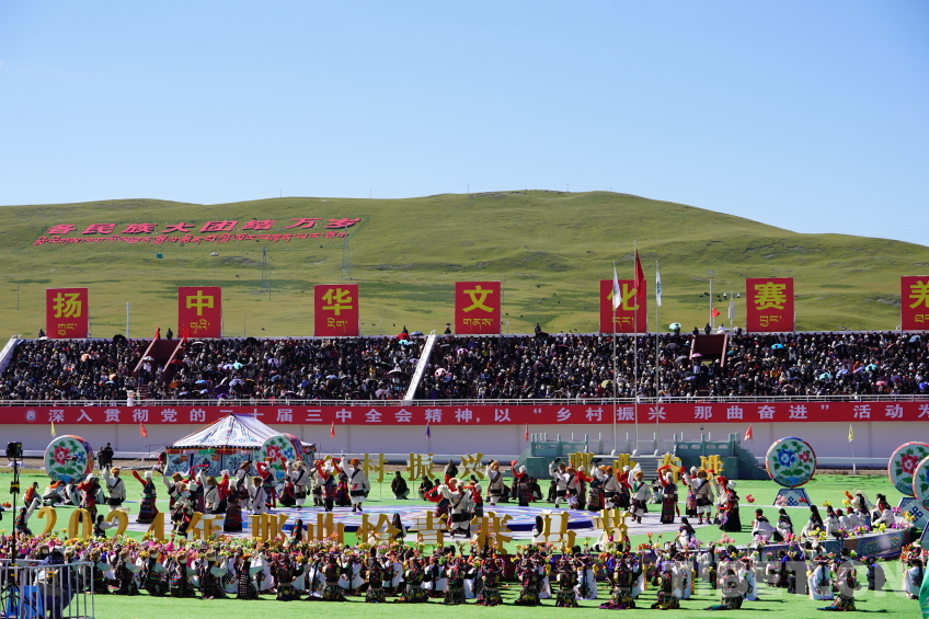 圖為2024年那曲恰青賽馬節(jié)暨第三屆“鄉(xiāng)村振興那曲奮進(jìn)”活動(dòng)開幕式現(xiàn)場 攝影:王淑