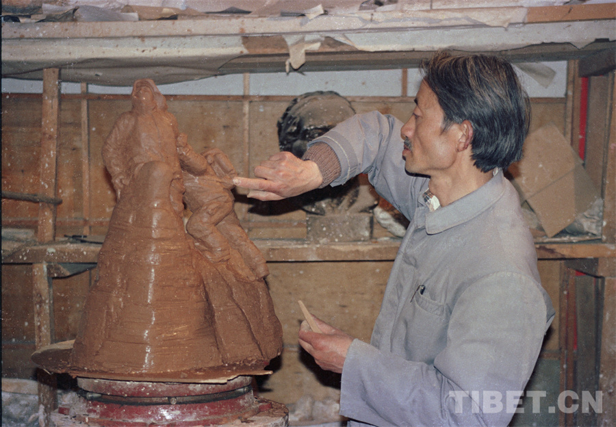 緊接著到來的六十年代,我的主要工作是畫主席像,雕塑主席像??梢哉f,我的雕塑藝術(shù)是從那時開始的。此前雖然也做過一些,但當軍管會要求我為自治區(qū)革委會的成立塑一尊大像時,我壯起膽子申請去北京學習石膏翻模。經(jīng)軍管會批準,拉薩警備區(qū)司令簽字,買了機票去北京,一學就是五個月。