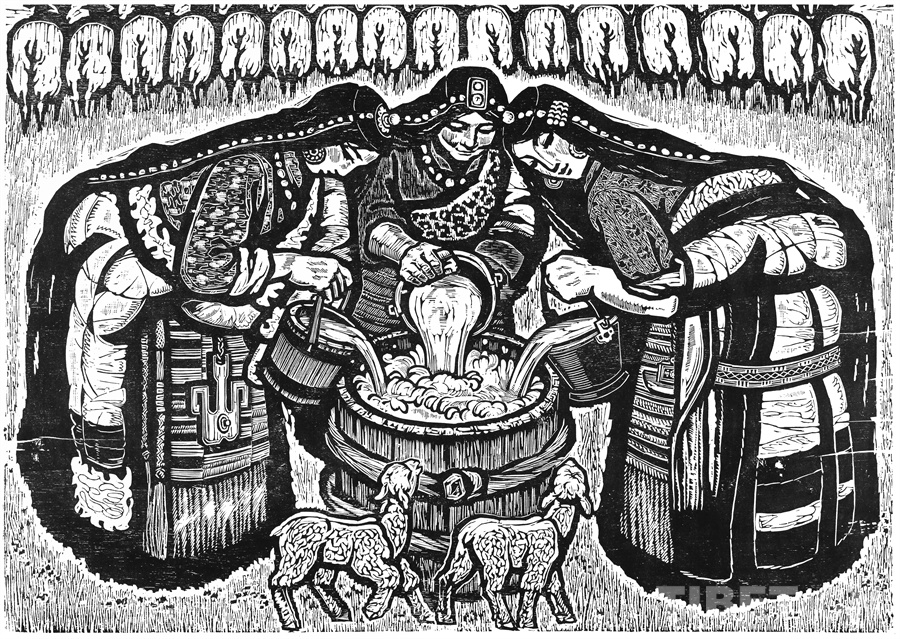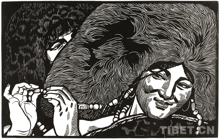 這些年來可以肯定的是我的創(chuàng)作道路和方向是基本對頭的。前幾年有人寫文章評論說,在外來思想影響已很豐富、多元化格局已經(jīng)形成的情況下,差不多只有版畫還恪守著現(xiàn)實主義的創(chuàng)作道路,而且在美術(shù)領(lǐng)域起到了導(dǎo)向作用。順便為版畫說句話:搞版畫的人一直尊重生活,認定生活是第一性的,版畫一開始就是在革命的環(huán)境中發(fā)生、發(fā)展起來的。版畫隨著四大發(fā)明發(fā)源于中國的土壤,后來被歐洲發(fā)展了,反過來又影響到中國。老大的中國有發(fā)明權(quán),但并沒有把它發(fā)展起來。魯迅先生為了推動版畫的發(fā)展,特別介紹了德國版畫和俄羅斯版畫為代表的版畫代表作和代表人物,還有美國的肯特,比利時的麥綏萊爾。介紹文字很精彩,無論對生平、對作品的介紹都很精彩。他推出的那些版畫大師,至今仍巍然屹立在美術(shù)史上。他對版畫的深刻而獨到的理解很可貴。國外有些不很知名但有好作品的,他也介紹到。而且給我們指出哪些是范本,我們一看果然耳目一新。魯迅先生的提倡影響了中國版畫的發(fā)展,進入了一個嶄新的階段,形成所謂新興版畫。這段時間并不長,也就六七十年吧。版畫統(tǒng)領(lǐng)潮流,面向生活的潮流。所以它的路子就很正,這個正就是正統(tǒng),一直發(fā)展得很健康。我從小就受影響,我當時所看到的版畫都是反映民間生活的東西:戰(zhàn)爭年代反映民間的疾苦與災(zāi)難,和平年代反映民眾的感情和生活,所表現(xiàn)的風景也由平常人眼中投射。一句話就是為人民服務(wù)指導(dǎo)下的藝術(shù)創(chuàng)作。如果問我的作品和生活的距離有多大,可說距離是小的,并未受到更多潮流的干擾,并未背離為人民服務(wù)的方向。正因如此,我要把西藏題材表現(xiàn)好,表現(xiàn)在一個理想的藝術(shù)高度上,而且這一高度還能讓一般欣賞者達到。我的理想就是這樣,要達到這一目標看來還很費勁。
