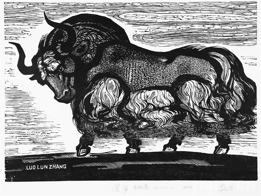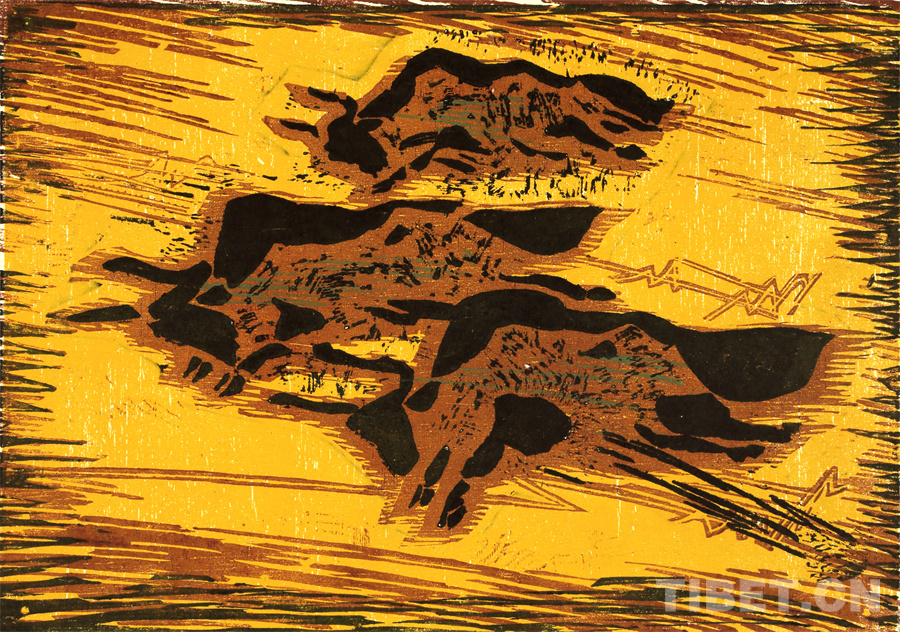 如果非要說我在版畫技法上有什么創(chuàng)新,參照西藏匠人刻經(jīng)文,在石頭上刻出來然后印出來也許就算。這不是一般石版畫概念,那叫石印,平版印刷;我這是凹版印刷。刻起來很費勁,我也不管費不費勁。我有一批這樣的石刻作品。綜合版作品手法較多,我通常分別在石板和木板上刻,然后套起來印。如果搞學術(shù)交流,也許值得一談。至于說到創(chuàng)新,第一我不認為我有什么創(chuàng)新,第二我不認為在藝術(shù)上、在美術(shù)上能夠輕易談創(chuàng)新這個詞。還有第三個觀點:不需要創(chuàng)新。很簡單,你先把傳統(tǒng)學到手再說。既是傳統(tǒng),就有它的存在理由,否則早就夭折了,還傳什么統(tǒng)呢?傳,而且統(tǒng)啊!統(tǒng)是什么意思?基調(diào)是它統(tǒng)一起來的。先把傳統(tǒng)學到手,爐火純青了,神來之筆出現(xiàn)了,才有可能有所創(chuàng)造?;A(chǔ)是重要的。