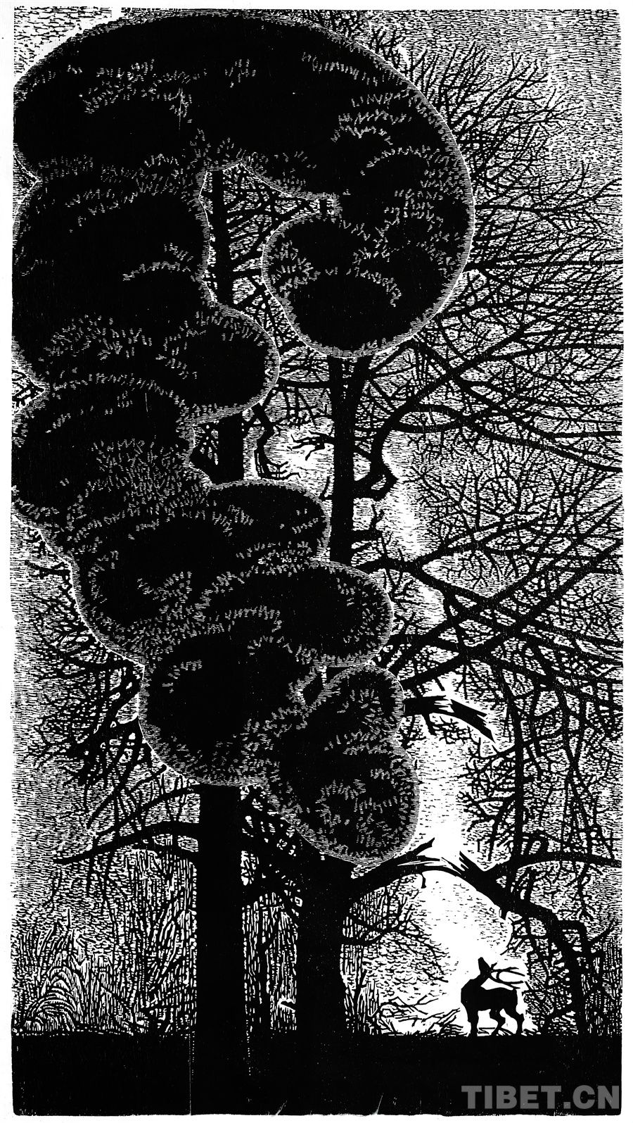 1975年籌辦《西藏文藝》,自治區(qū)宣傳部抽調(diào)包括我在內(nèi)的幾個人,其中有羅志龍、央金、張蜀華等。我既做美編也編文字稿。從《西藏文藝》改為《西藏文學》,請郭老(沫若)題寫封面;從季刊到雙月刊到月刊,我一直當了15年編輯,主要從事美編。就我的想法來說,西藏沒有專業(yè)的美術(shù)刊物,《西藏文學》應(yīng)當為培養(yǎng)美術(shù)人才提供一個園地。從封面和插圖的組稿、編稿、刊用,都比較注意發(fā)現(xiàn)和培養(yǎng)美術(shù)新人。在我所組織的美術(shù)作品中,后來獲得國家級金牌獎、二等獎和優(yōu)秀獎的作品各一幅,還有一些本區(qū)大獎。平鋪直敘地說,美編工作對我個人而言也很有意義,意義在于可以為文學作品畫插圖。我對美術(shù)的興趣正是從插圖開始的。過去接觸好的文學作品往往是從插圖看起。插圖應(yīng)是一個單獨的門類,所要求的基本功和其他畫種一樣,同時另有它自身的要求。好的插圖有獨立欣賞的價值,具有構(gòu)思的深度和形式上的完整。這樣的例子太多太多,就不去說它了。