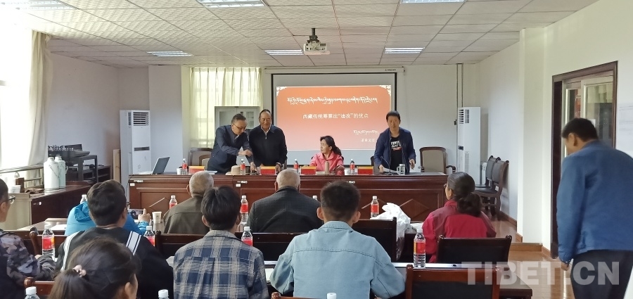 圖為諾章·吳堅先生在拉薩師范高等??茖W(xué)校講授傳統(tǒng)籌算法 邊貴供圖