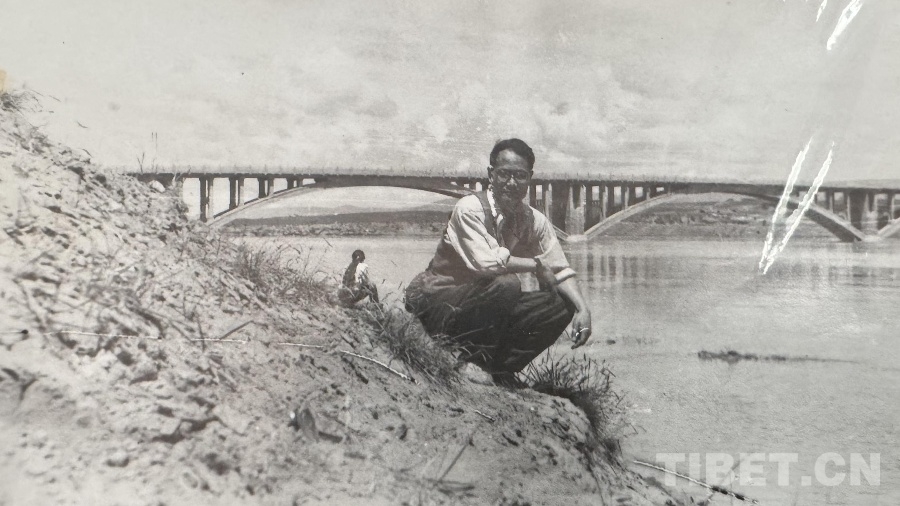 圖為王萬(wàn)青在瑪曲黃河大橋邊留念 翻拍:易文文