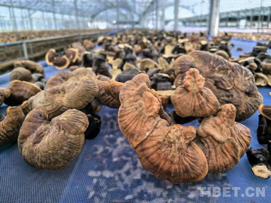 圖為紅太陽科技示范家庭農(nóng)場晾曬大棚里的靈芝 攝影:王淑