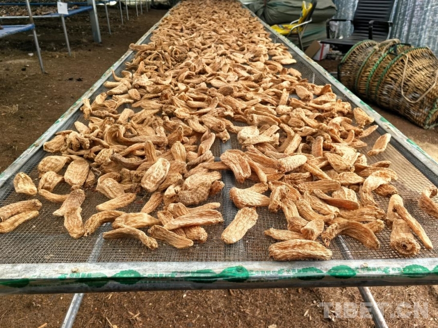 圖為紅太陽科技示范家庭農(nóng)場大棚里晾曬的天麻 攝影:王淑