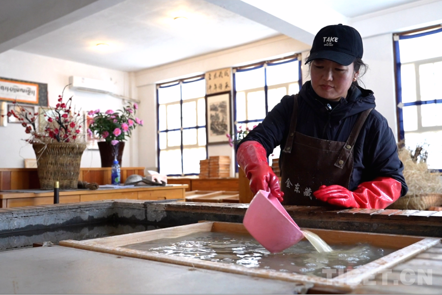 在政府和工匠們不懈地保護(hù)發(fā)揚(yáng)下,金東藏紙重?zé)ㄉ鷻C(jī)。2013年,“金東藏紙制造技藝”被納入自治區(qū)級非物質(zhì)文化遺產(chǎn)名錄,朗縣投入100萬元用于金東藏紙改擴(kuò)建項(xiàng)目;2017年,金東藏紙獲評中國特色旅游商品,深受國內(nèi)外人士喜愛;近年來,金東藏紙制造技藝已基本恢復(fù)工藝流程,2024年政府再次投入資金20萬用以購買造紙?jiān)O(shè)備。