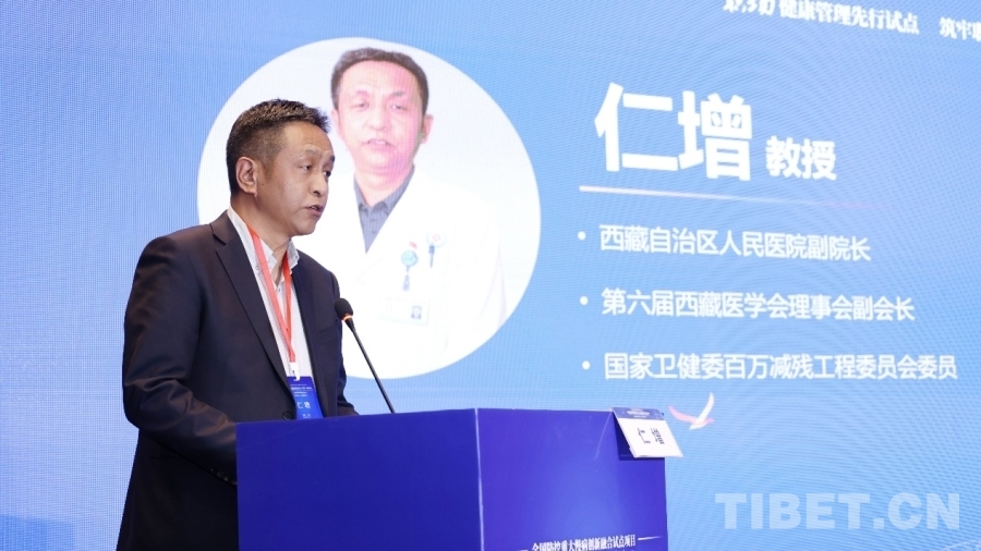 圖為西藏自治區(qū)人民醫(yī)院副院長、第六屆西藏醫(yī)學會理事會副會長、國家衛(wèi)健委百萬減殘工程委員會委員仁增教授發(fā)言