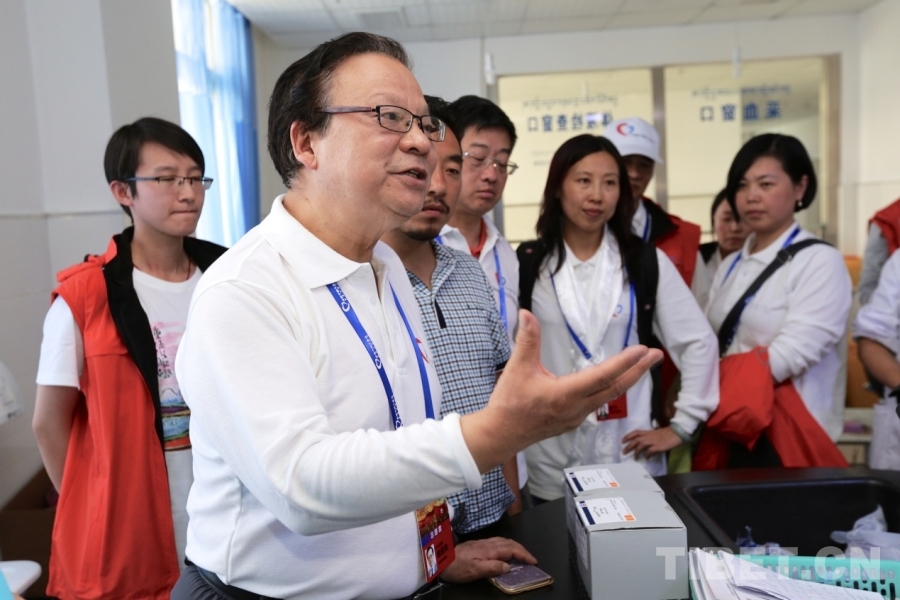 圖為2016年“同心·共鑄中國(guó)心”四川甘孜行活動(dòng)中,郎景和院士(前排左三)在四川省甘孜州道孚縣指導(dǎo)當(dāng)?shù)蒯t(yī)務(wù)工作者 北京同心共鑄公益基金會(huì)供圖
