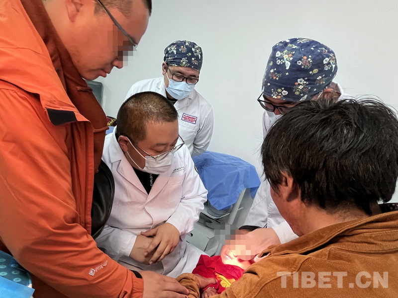 圖為火箭軍特色醫(yī)學(xué)中心口腔科主治醫(yī)師張曉然(左二)與阿壩州人民醫(yī)院口腔科團(tuán)隊(duì)正在為被黃鼠狼咬傷的幼兒會診