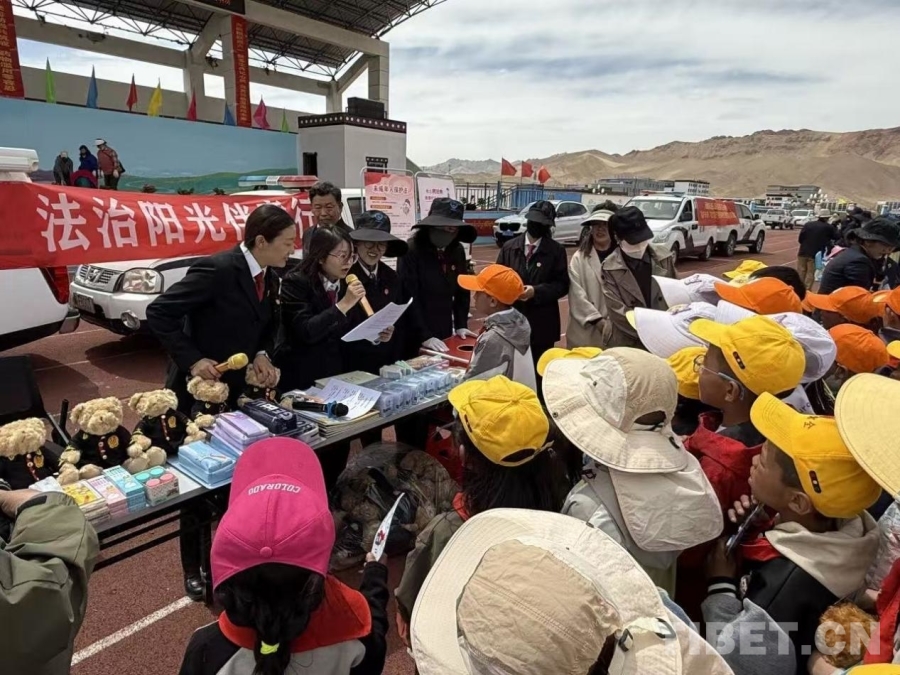 圖為今年5月底,維權(quán)工作站走進(jìn)阿里地區(qū)陜西實(shí)驗(yàn)學(xué)校開展普法宣傳活動(dòng)現(xiàn)場(chǎng) 來源:阿里法院微信公眾號(hào)