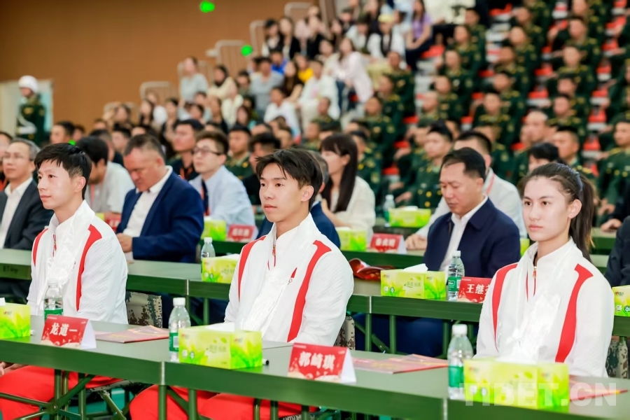 宣講中,黃雨婷、陳清晨和馬龍帶著賽場內外的赤誠與感悟,結合各自成長軌跡與拼搏故事,同官兵們真誠交流、共鳴心聲。他們聊起訓練場上與傷病斗爭的汗水、突破瓶頸時的堅持,話及賽場決勝瞬間的緊張與突破自我的暢快,更分享了身披國旗時的初心與為國爭光的榮光。互動環(huán)節(jié)里,官兵們踴躍提問,從“如何和隊友保持默契”到“怎樣保持冷靜”,奧運冠軍們一一作答,現場氣氛熱烈。潘展樂、張雨霏也特意通過視頻向官兵們致以誠摯問候,鼓勵大家在各自的賽場上奮勇拼搏,綻放最好的自己。