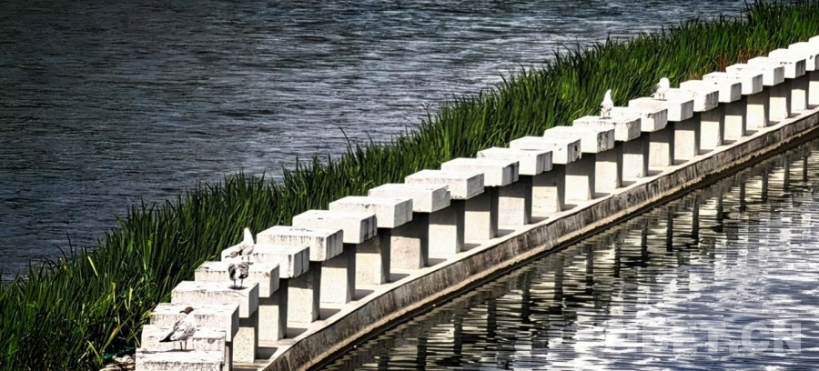 圖為拉薩兩島內(nèi)河綠色生態(tài)廊道一隅,水鳥(niǎo)棲息在河中的堤壩上 攝影:劉莉